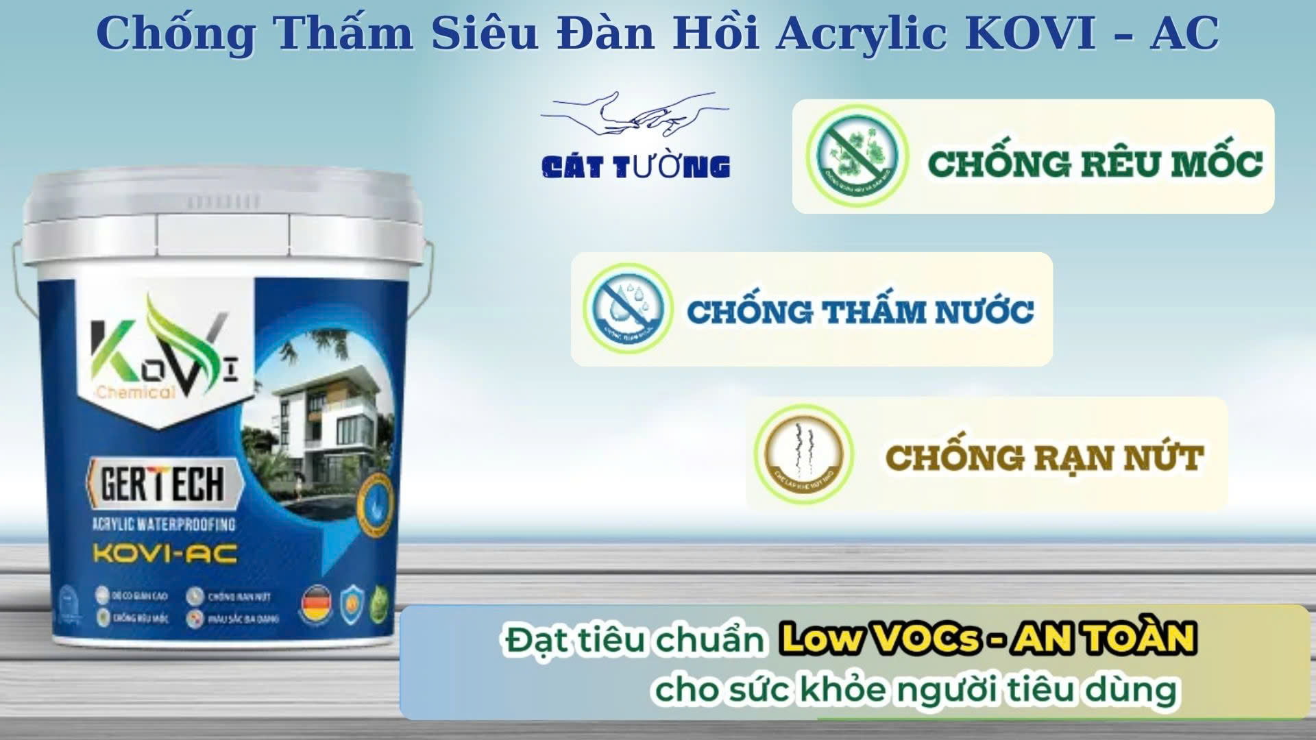 Công thức thân thiện với môi trường, chống thấm tường ngoài Kovi AC không chứa chất độc hại, không có mùi khó chịu. Đảm bảo an toàn cho sức khỏe người sử dụng và cả người thi công