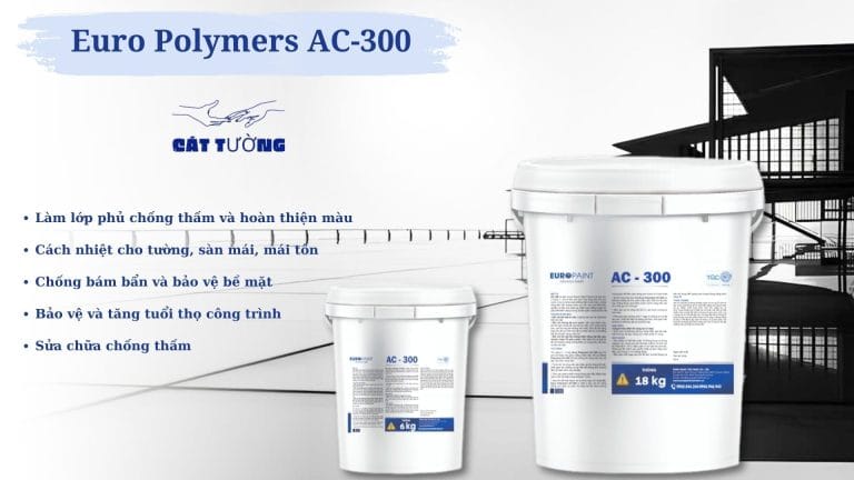 Euro Polymers AC-300 1 thành phần gốc Acrylic cao cấp, chống thấm và giảm nhiệt hiệu quả. Với khả năng đàn hồi tốt, giúp chống thấm và chống nóng tối ưu .