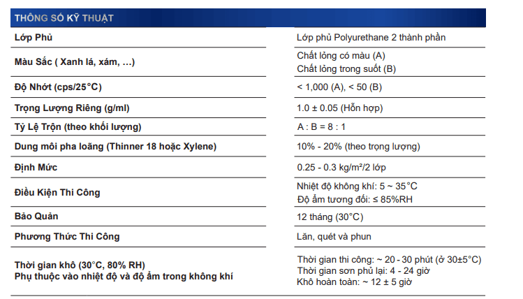 Thông số kỹ thuật của Euro Polymers UP-255 Chống Thấm Gốc Polyurethane