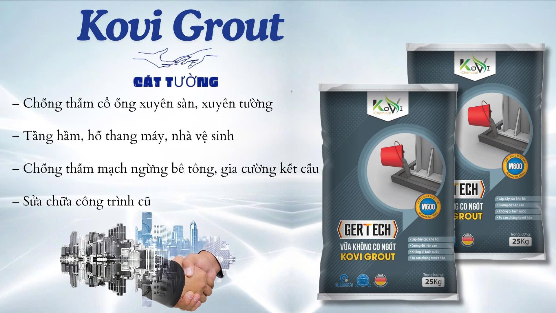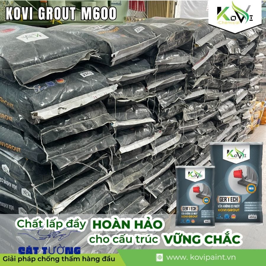 Vữa chống thấm KOVI GROUT Max 600 không co ngót chuyên dụng cho: