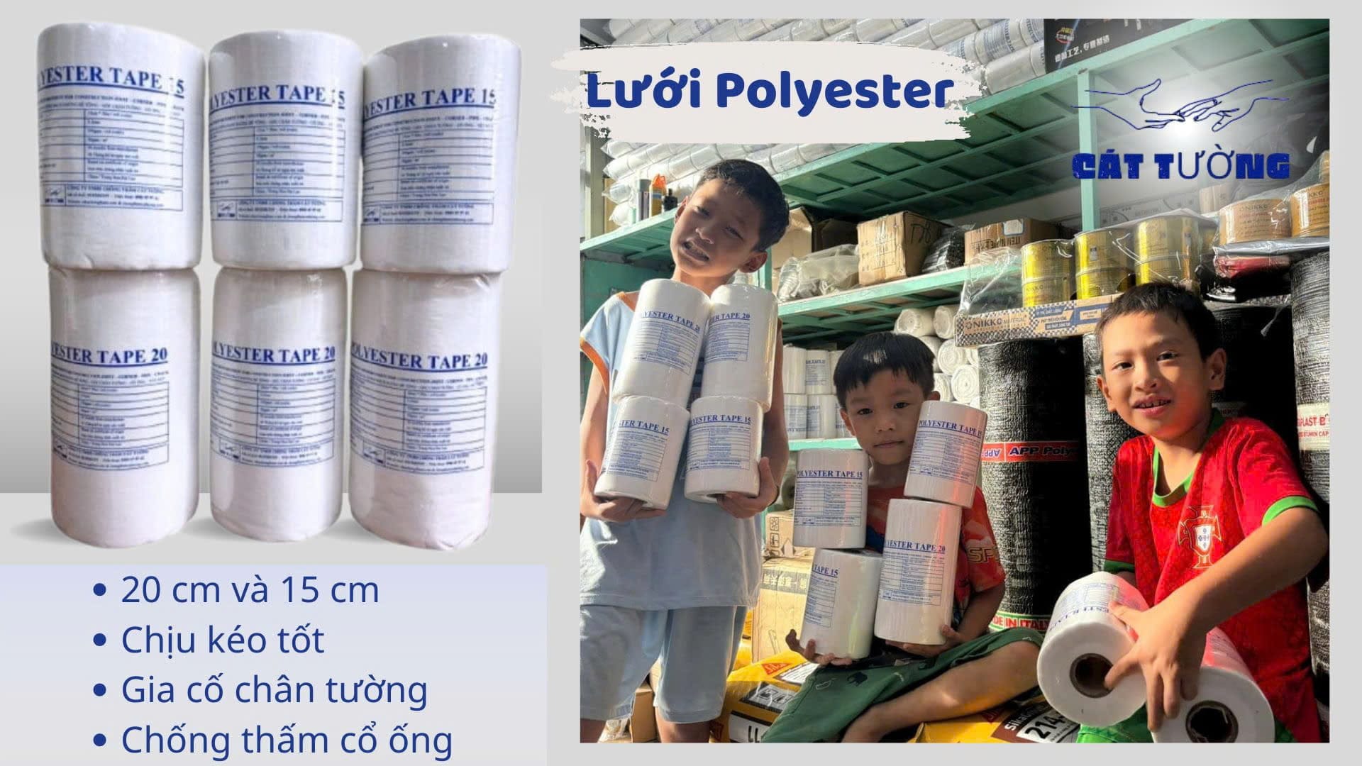 Lưới gia cố Polyester chống thấm 20cm là một sản phẩm chuyên dụng trong ngành chống thấm. Dùng để tăng cường khả năng chịu kéo xé và gia cố các bề mặt như góc chân tường, bề mặt sàn và các khu vực cần chống thấm khác. Đây là một loại lưới được làm từ sợi Polyester. Với khả năng chịu được tác động của môi trường, giúp bảo vệ các công trình khỏi hư hỏng của vấn đề nhức nhối của thấm nước.