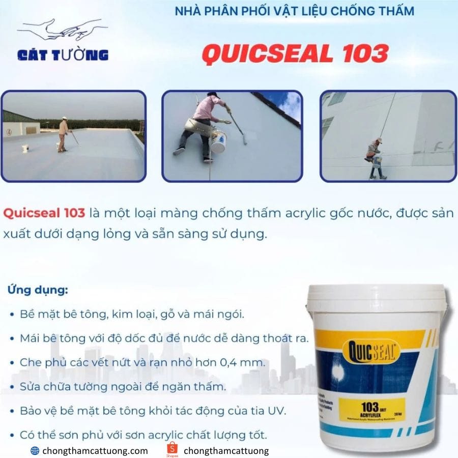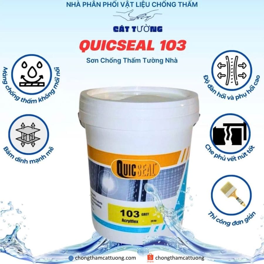 Quicseal 103 là sơn chống thấm gốc Acrylic 1 thành phần kháng tia UV, đàn hồi tốt. Với khả năng chống thấm tối ưu, độ phủ bề mặt cao và chống lão hóa. Sơn chống thấm Quicseal tạo màng chống thấm liền mạch không mối nối bảo vệ hoàn hảo tường, mái nhà bạn.